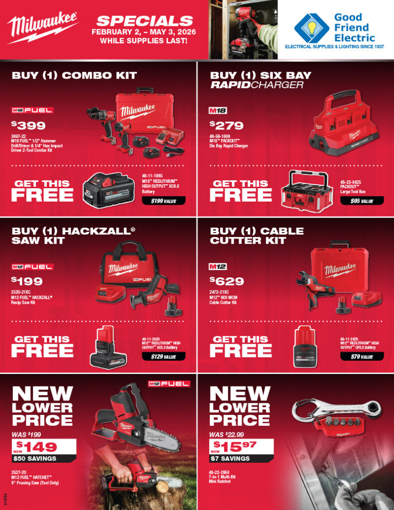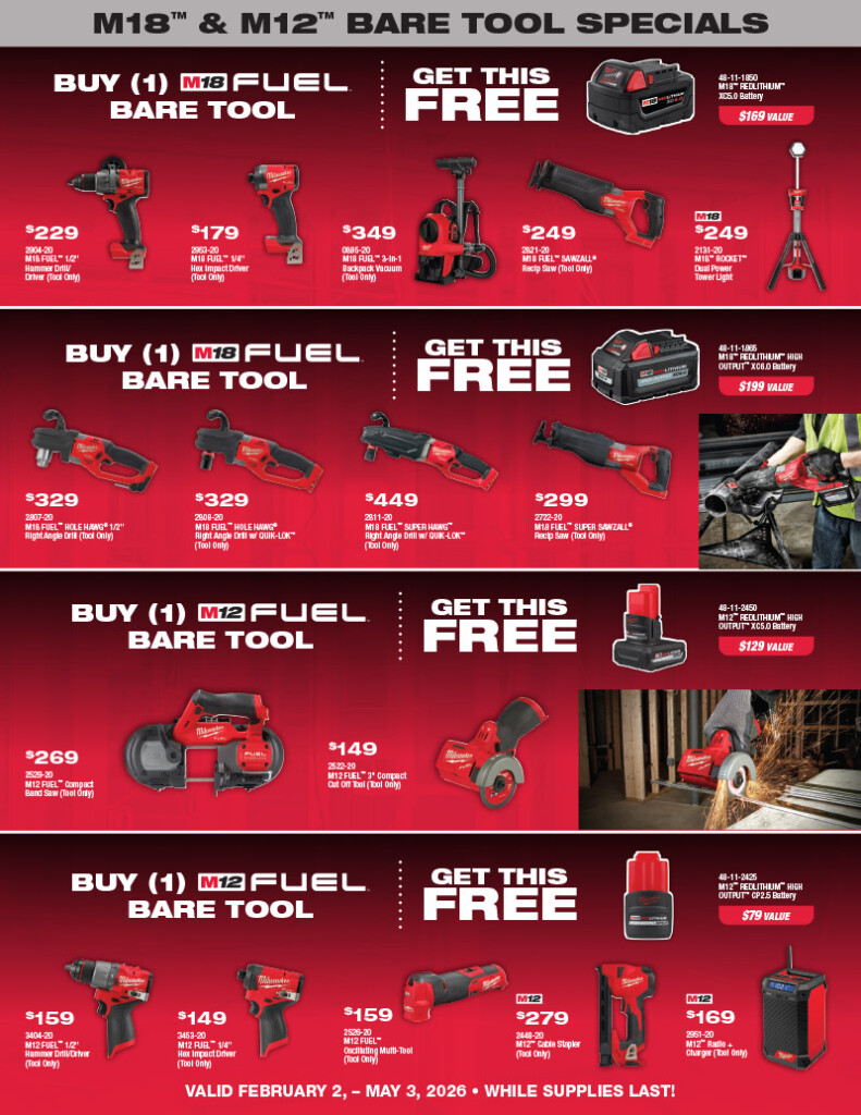 Stop by one of our convenient locations to see all the Milwaukee Tool Specials.